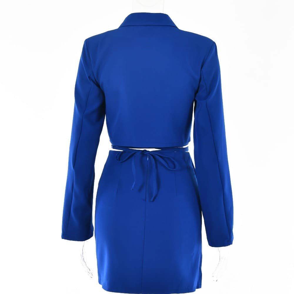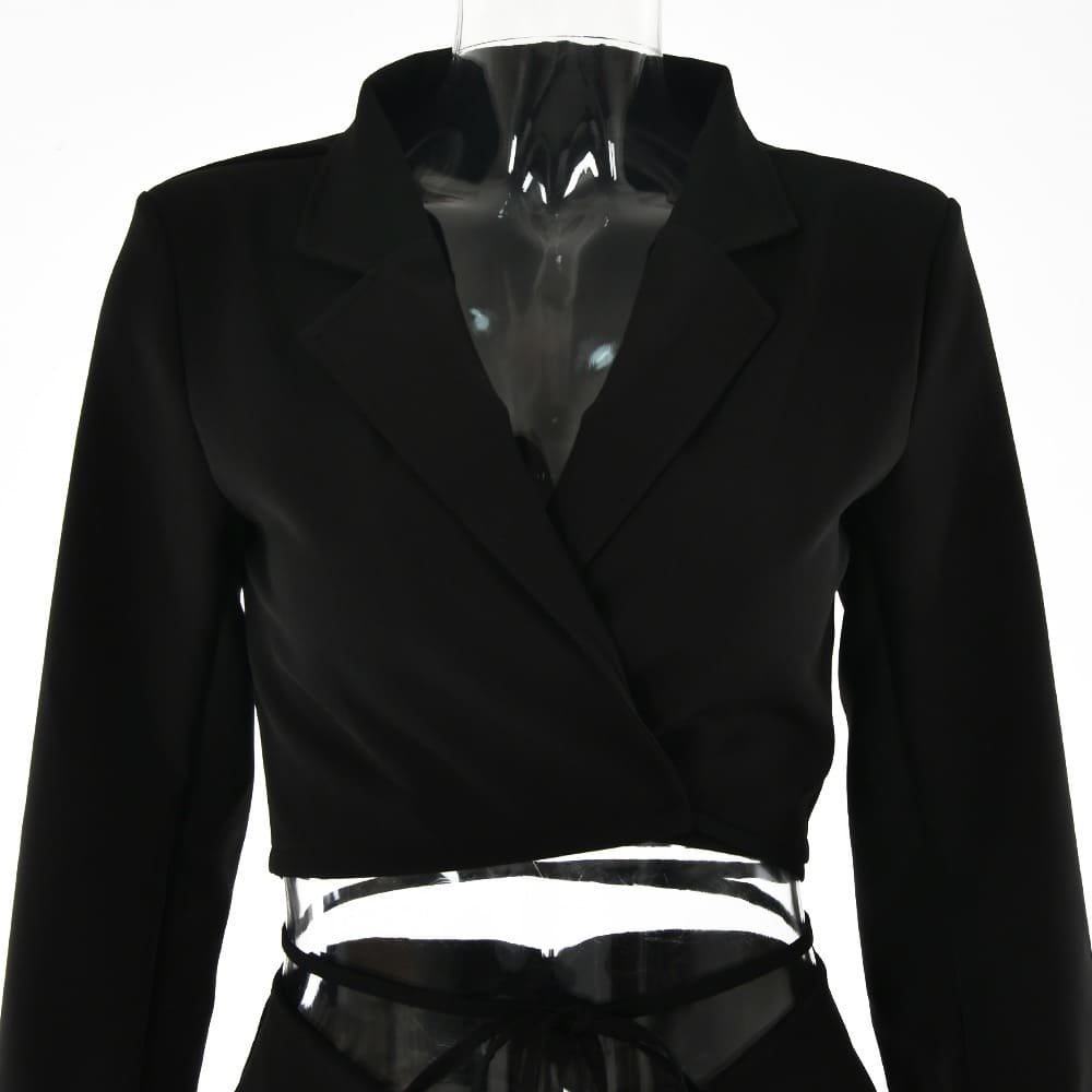 The cropped blazer has a single button fastening, cropped length, lining and collared neckline. Pair with the matching Mini Skirt for a killer look.